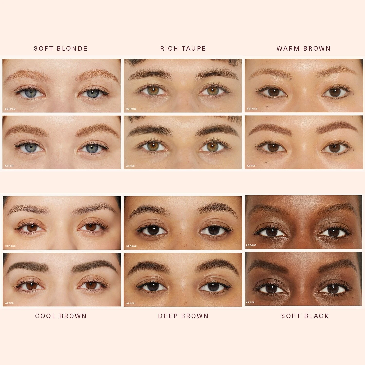 Sa pointe rectangulaire biseautée permet de dessiner facilement des poils fins pour un look naturel subtil, ou de combler les zones clairsemées pour un effet plus intense. Sa texture équilibrée entre crème et cire offre une application fluide et homogène, pour maîtriser facilement l’effet pigmenté. La brosse intégrée permet de coiffer et d’estomper pour un résultat naturel.