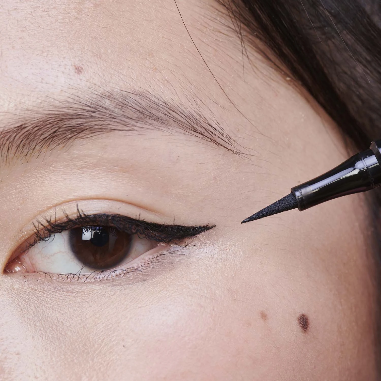 Grâce à sa mine longue et souple, cet eyeliner feutre permet de dessiner en un seul geste son trait de liner et de le moduler selon son envie.